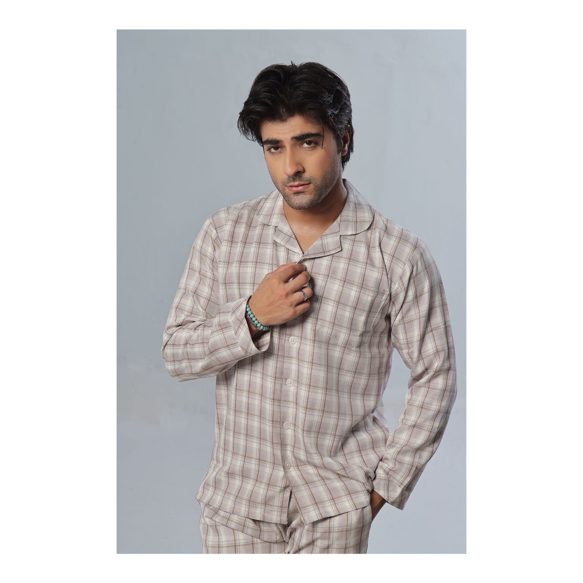 Basix Men's Check Print Cotton Loungewear Dress 2-Piece Set Off-White & Brown LW-819