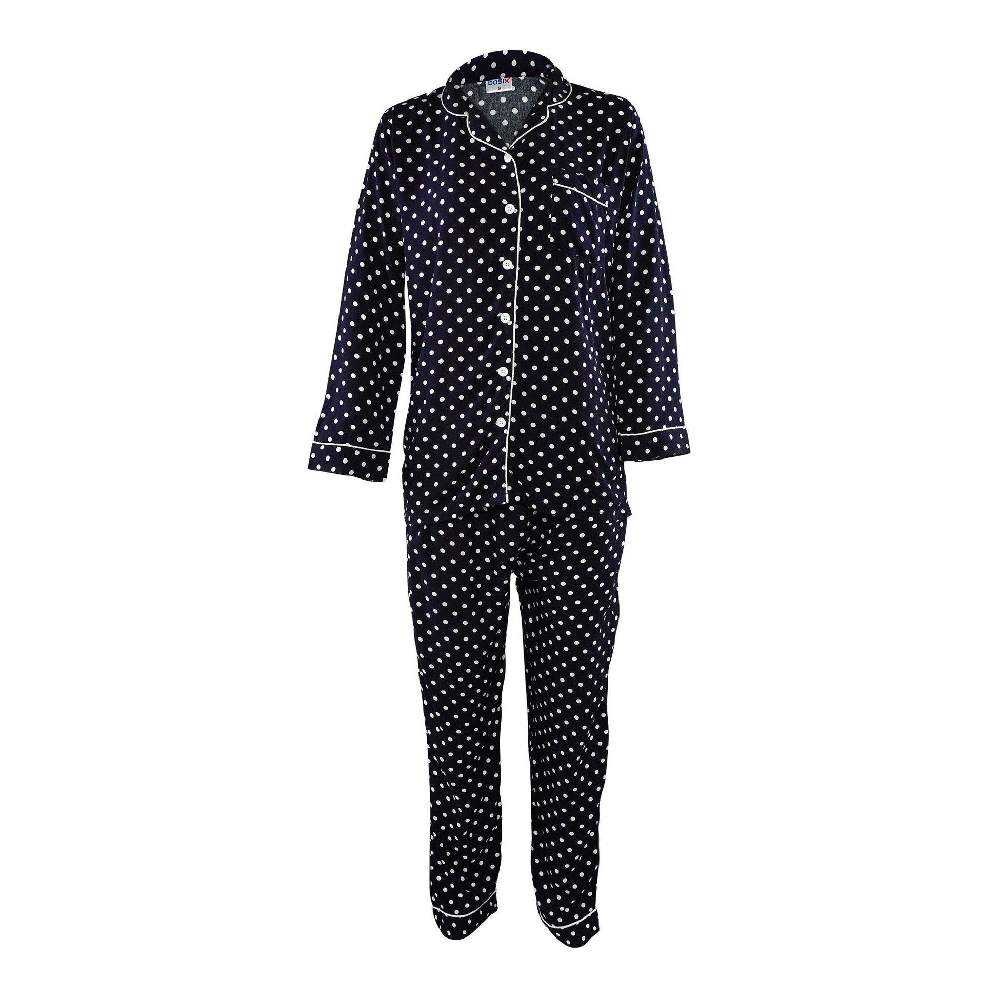 Basix Women's Mini Polka Dots Print Loungewear Dress 2-Piece Set Navy Blue & White LW-617