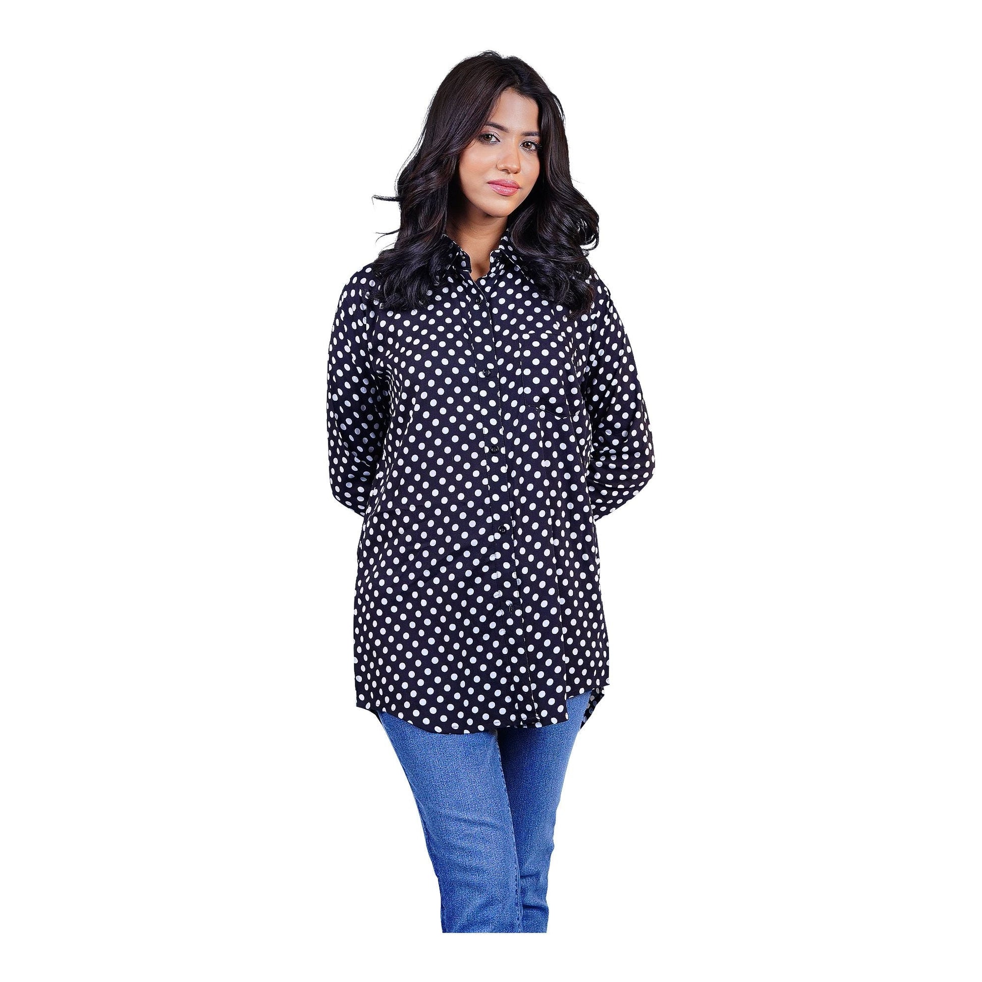 Basix Women's Polka Dots Western Shirt Midnight Black LWS-27