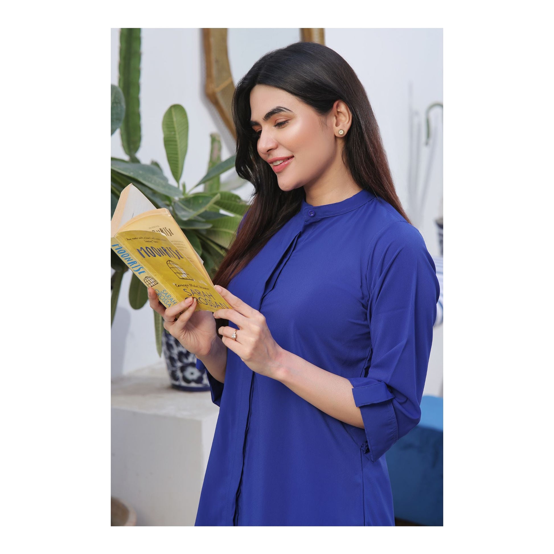 Basix Women's Solid Fusion Co-ord Set Dress Soft Fabric Relax Fit Royal Blue CORD-109