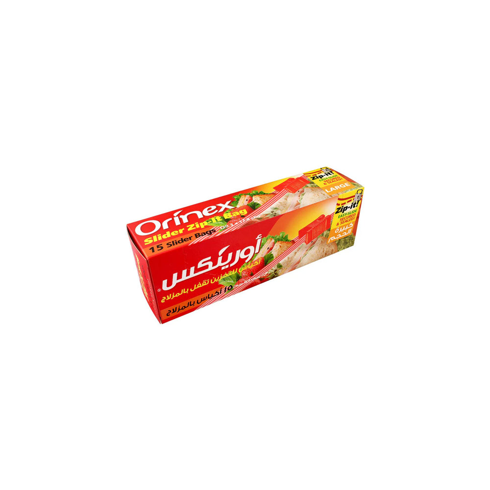 Orinex Slider Zip-Lock Bag, 8x7 Inches, Large, 15-Pack, Food Grade